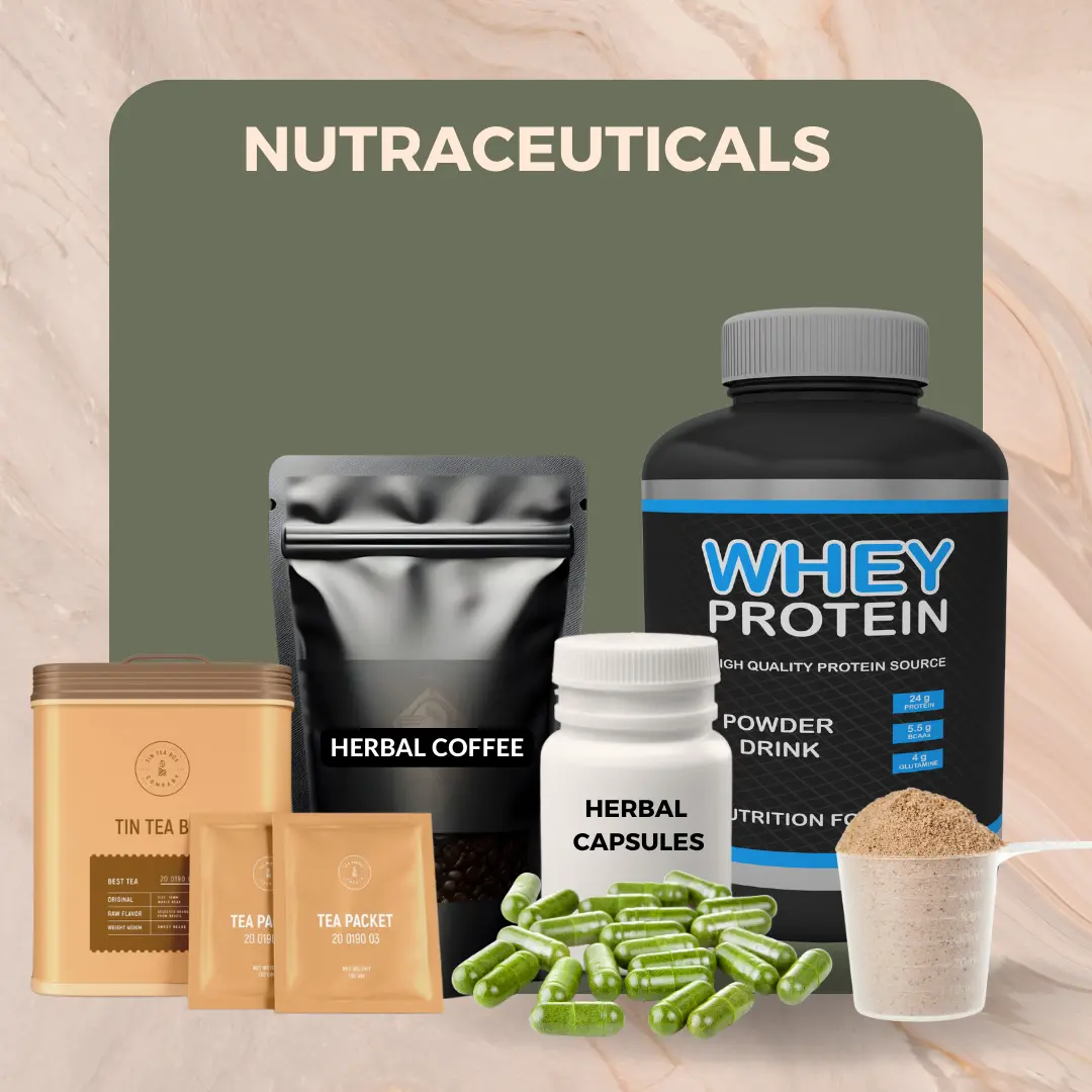 Our Nutraceuticals range offers a carefully curated selection of premium capsules and powdered beverages, each formulated to support health, wellness, and optimal performance. From essential multivitamins and potent herbal supplements to skin-nourishing collagen drinks, cleansing detox mixes, and energy-boosting protein blends, our products are crafted with high-quality ingredients to help you look, feel, and perform at your best—every day.